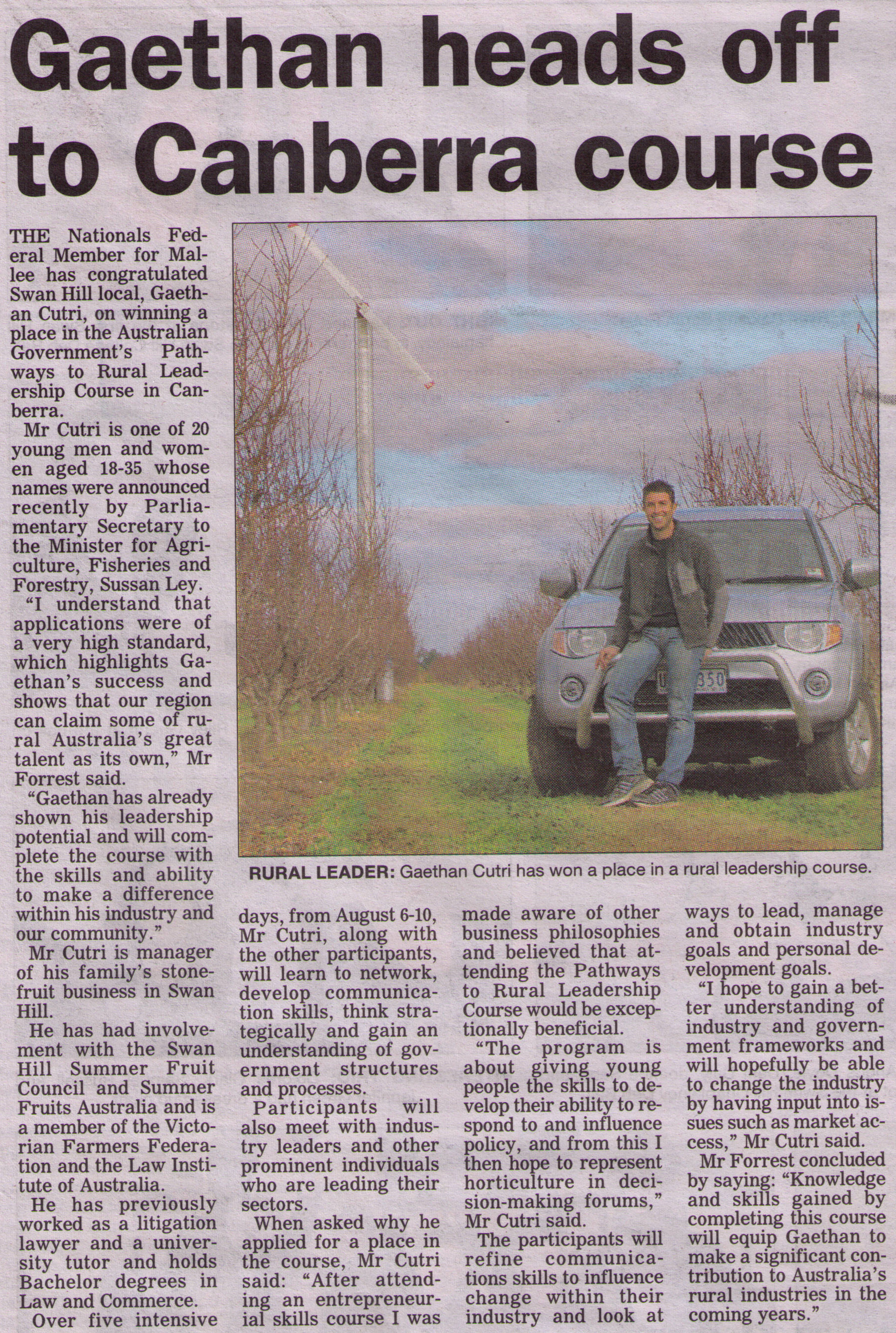 Gaethan heads off to Canberra course - The Guardian 20/07/07