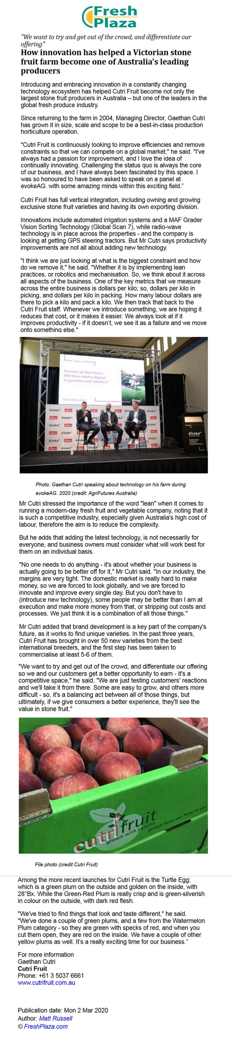 Introducing and embracing innovation in a constantly changing technology ecosystem has helped Cutri Fruit become not only the largest stone fruit producers in Australia – but one of the leaders in the global fresh produce industry.